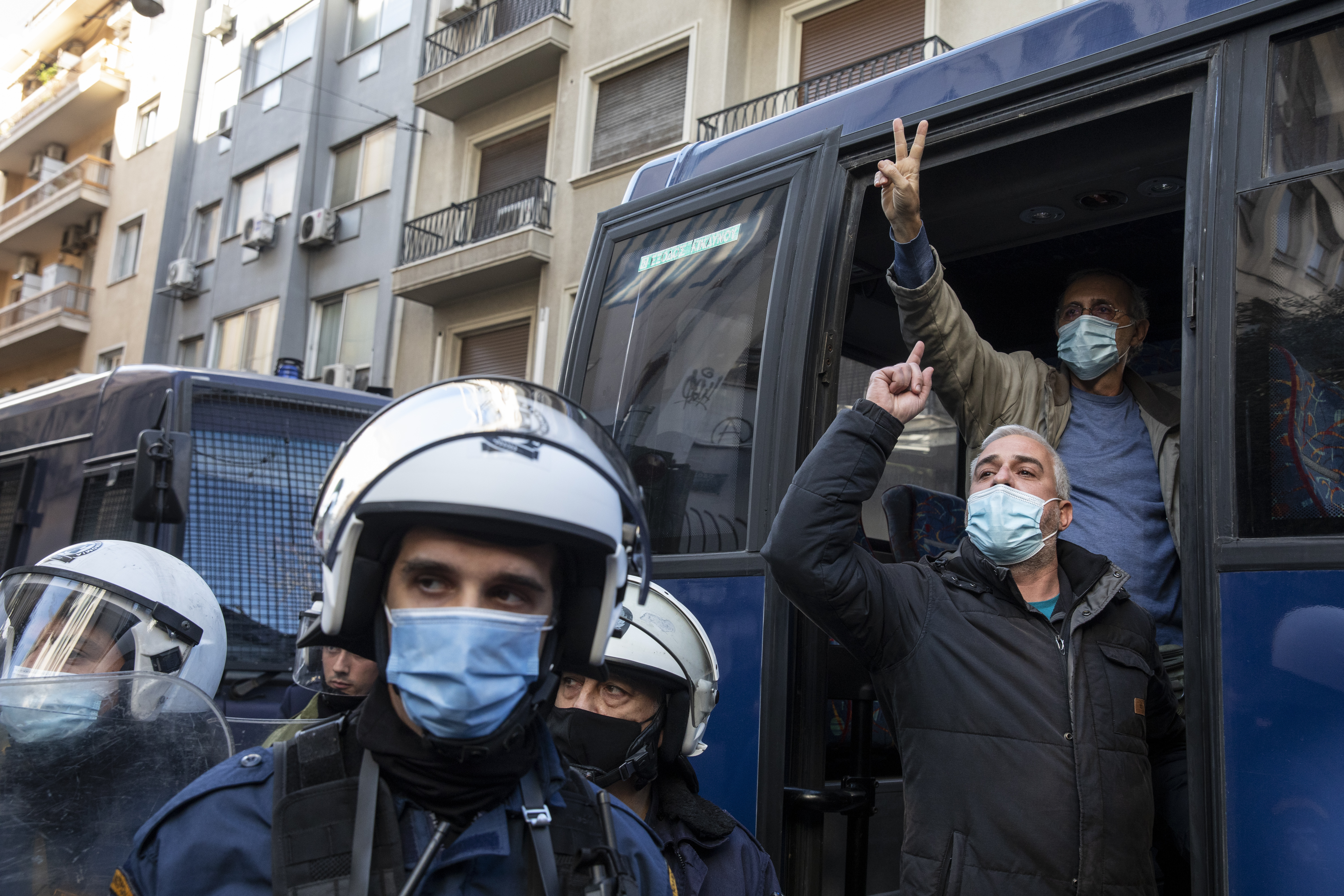 Footage posted online showed riot police on Sunday afternoon entering apartment buildings in Exarcheia, a neighbourhood in central Athens, to flush out would-be protesters. One video showed officers throwing stun grenades inside a building. Another clip showed police pushing photojournalists and other accredited members of the media.
