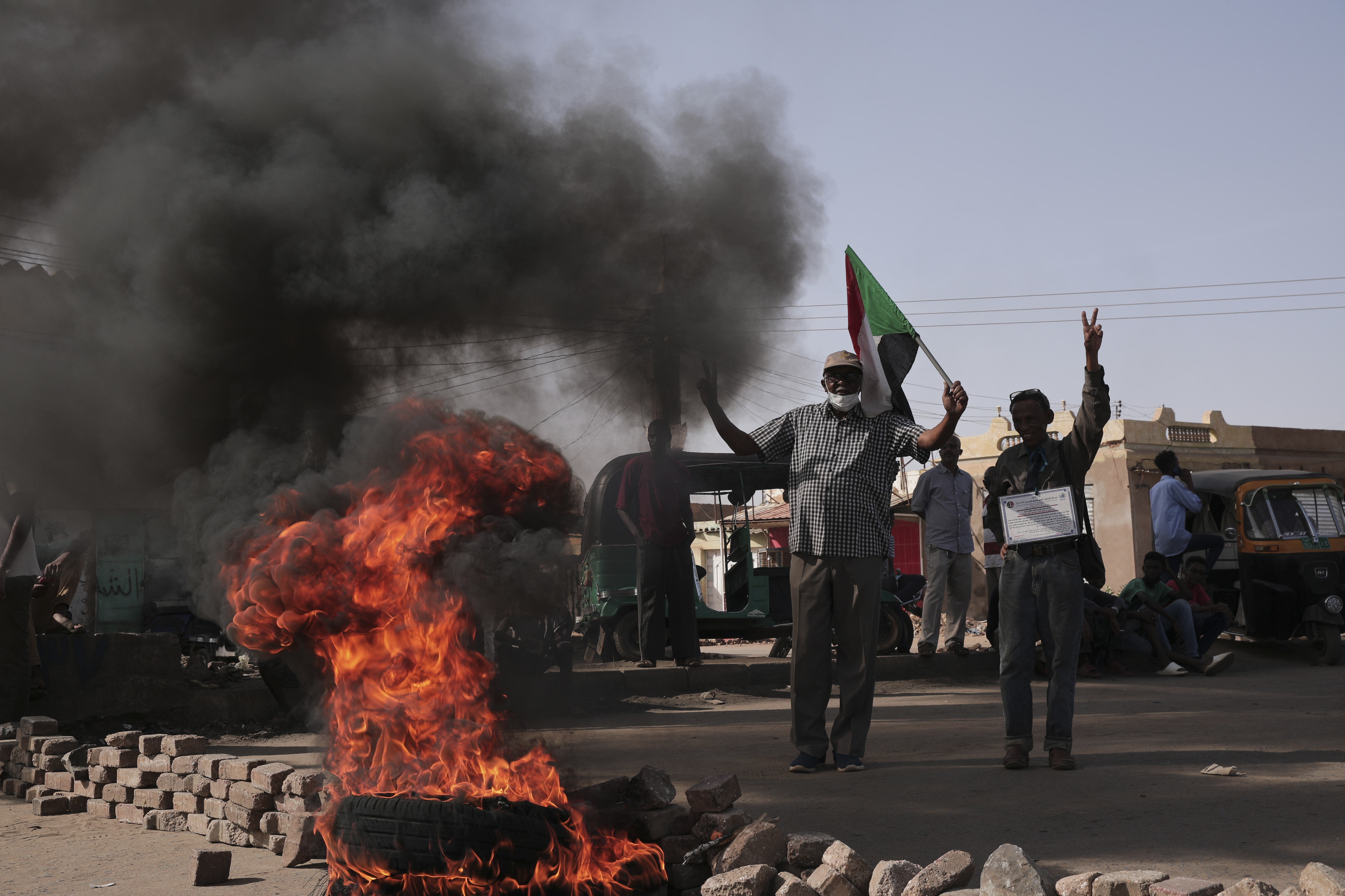 Protesters in Khartoum waved Sudanese flags and chanted “civilian is the people’s choice” as well as “the people are stronger.”