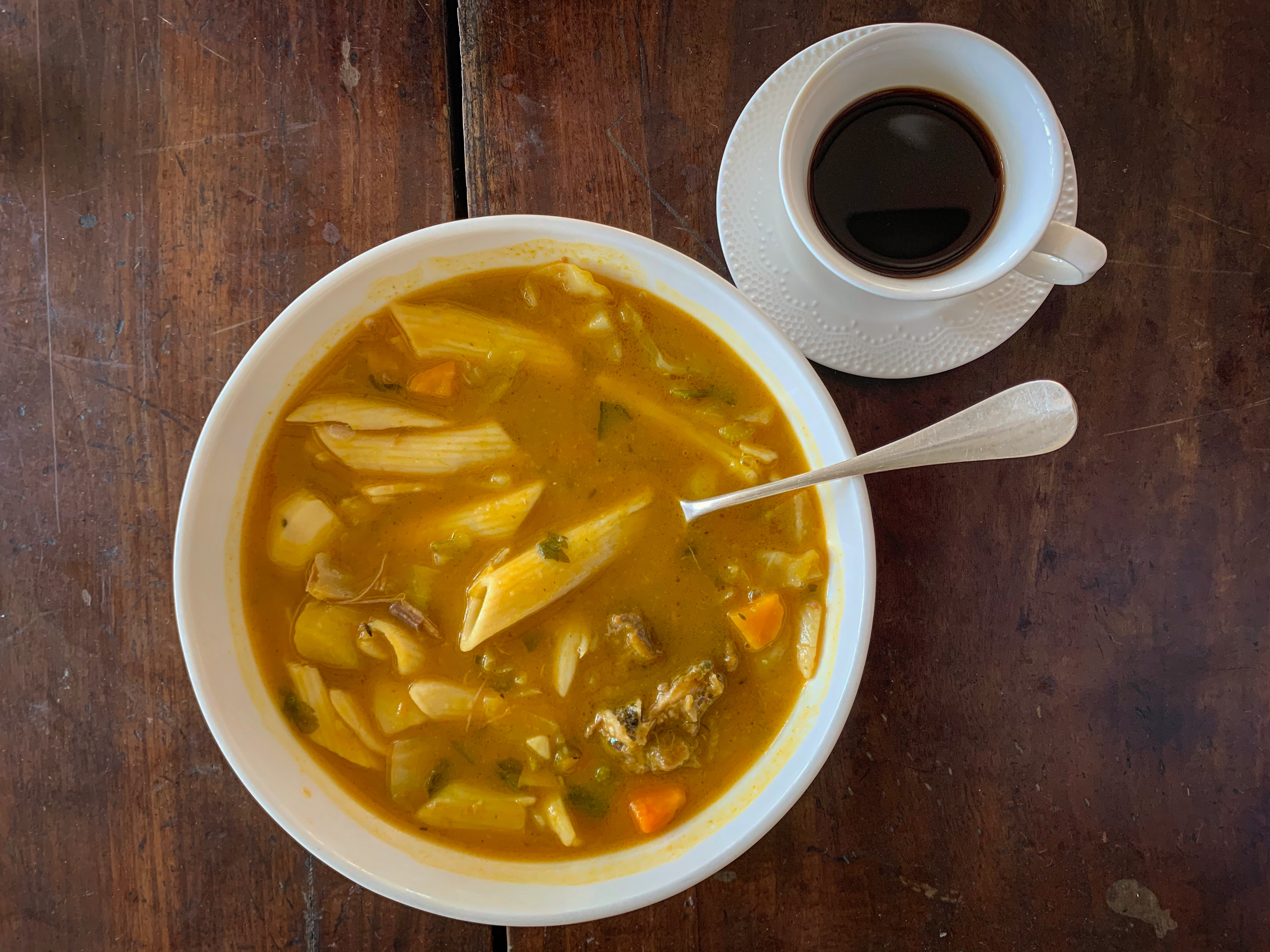 The dish, also known as giraumon soup, is made of pumpkin, vegetables, plantains, meat, pasta and spices.