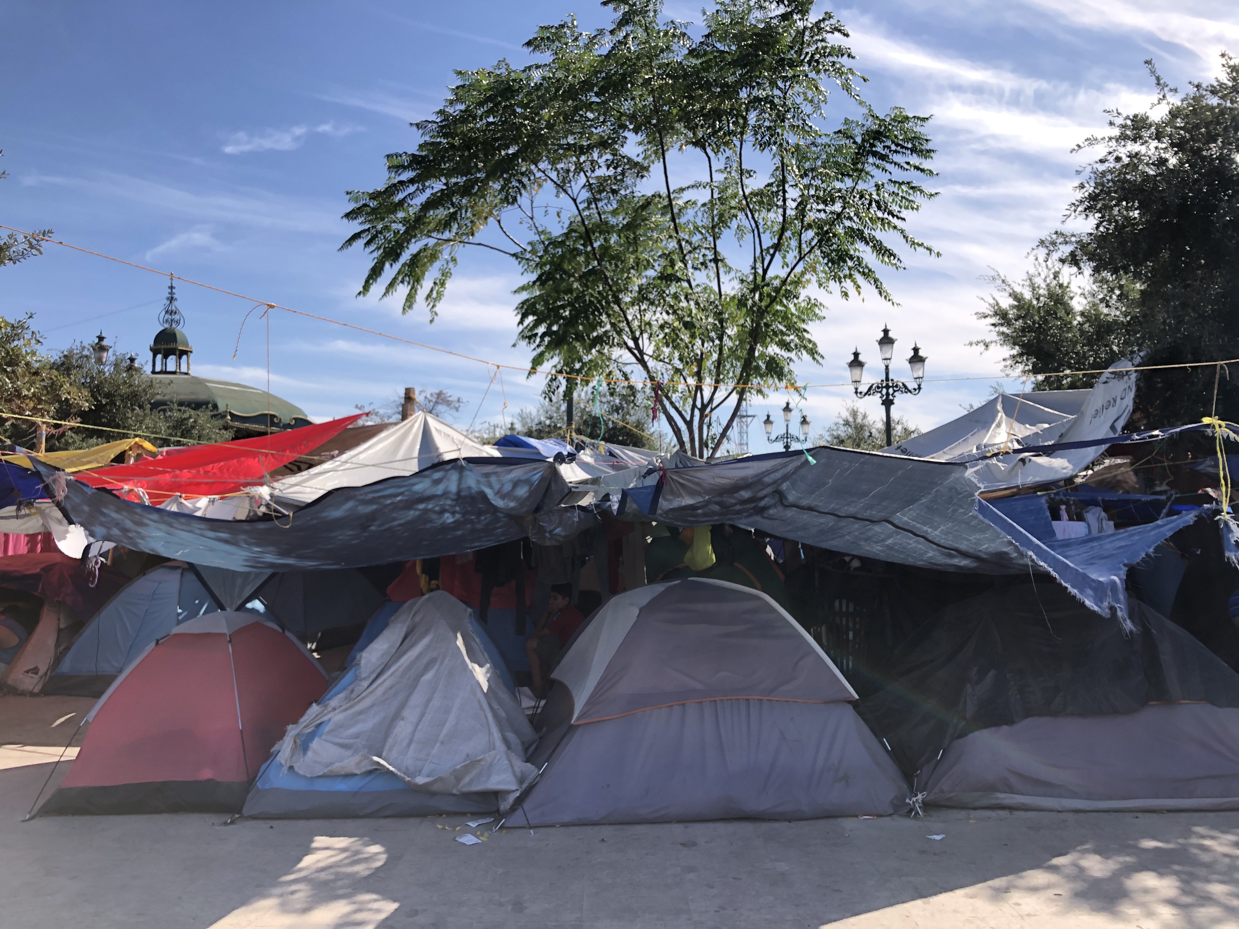Lourdes Gonzalez, a longtime advocate for the poor of Reynosa, told Al Jazeera she walks through the camp in the plaza looking for sick people every day. As she dodged tangled laundry lines and tarps on a recent day, people crowded around her to ask questions.