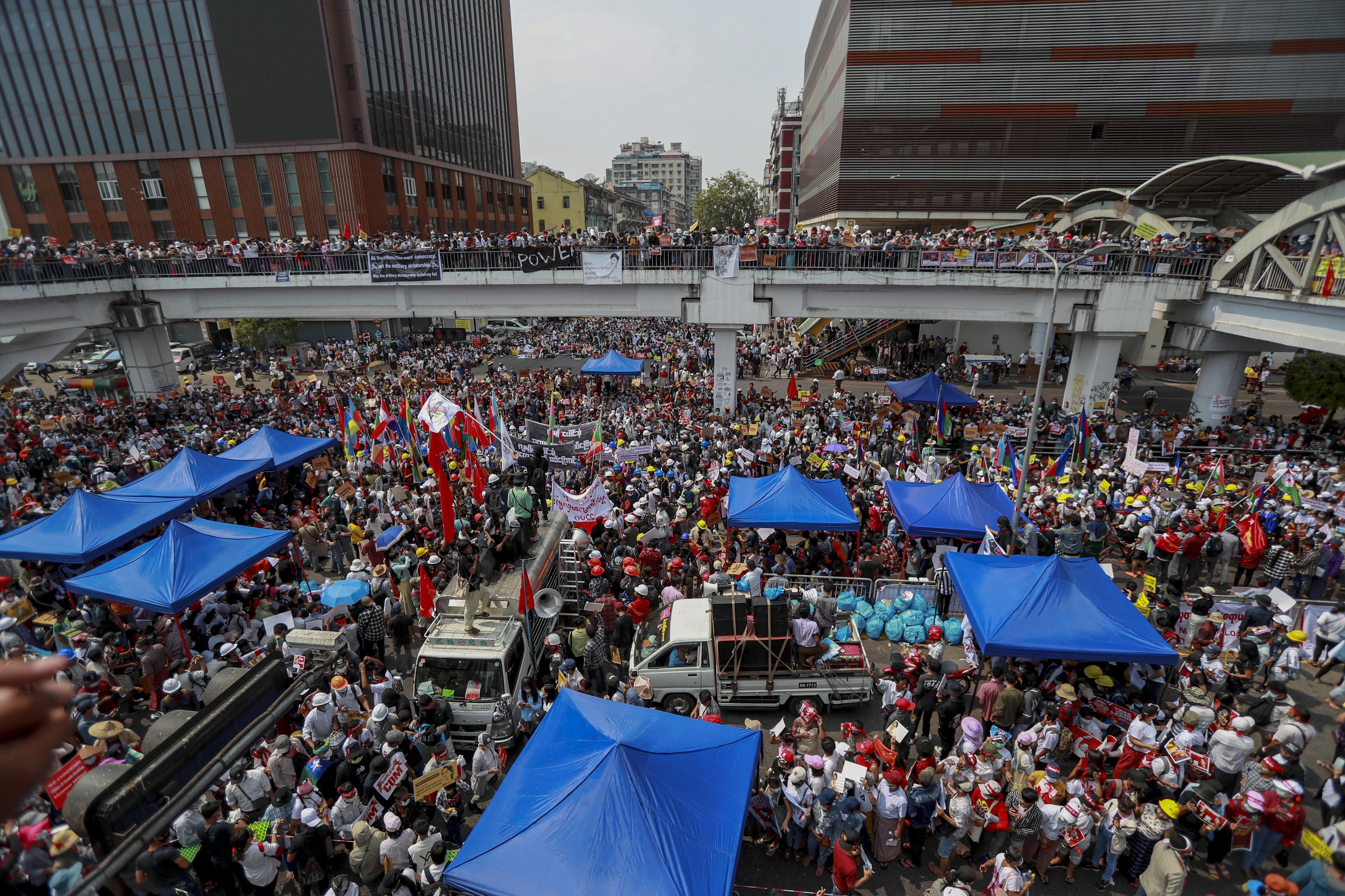 list of 4 items- list 1 of 4Protesters create gridlock in Yangon amid fears of violence