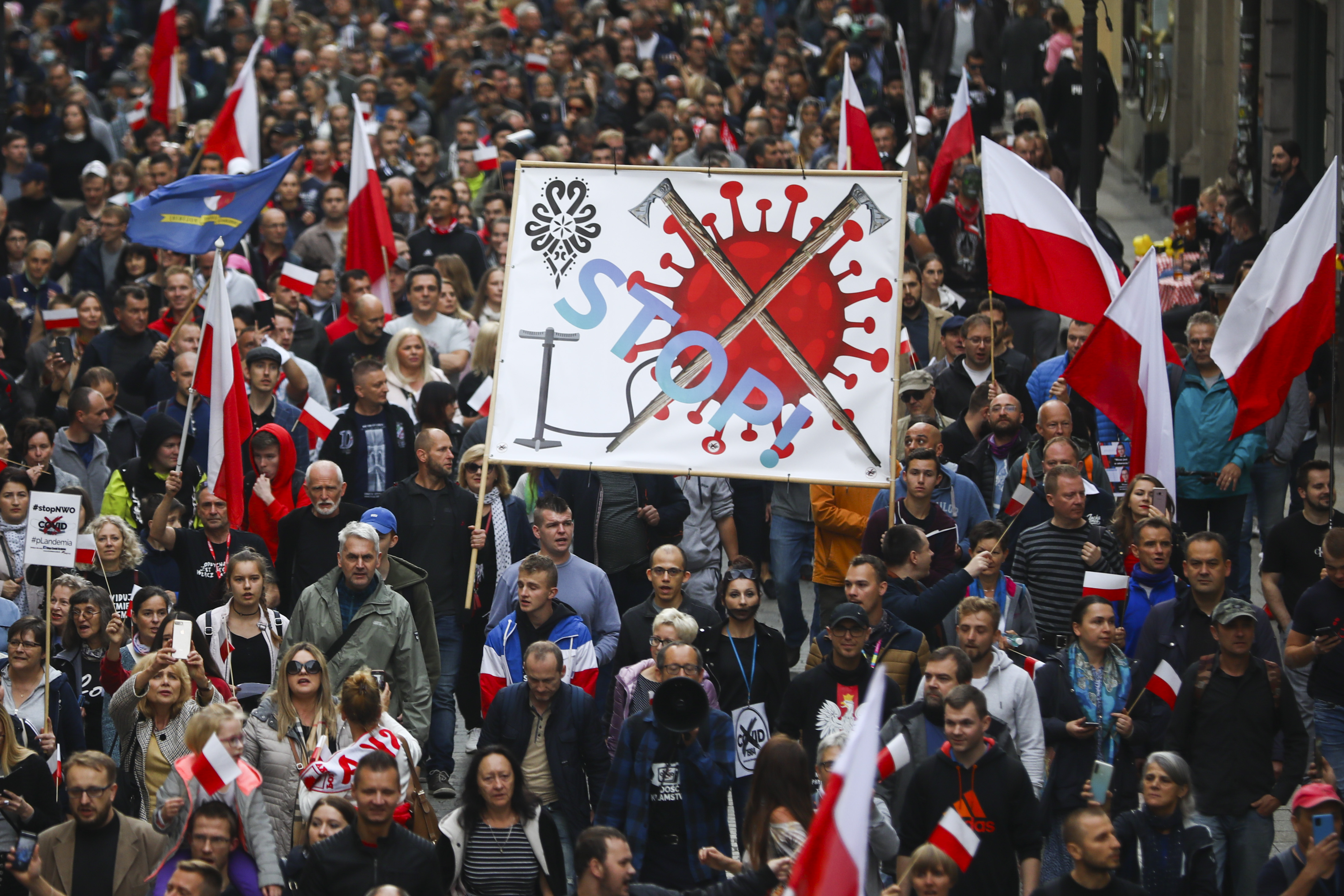 Conspiracy theories were prominent at anti-lockdown protests in Europe late last year and have reemerged in recent protests in Germany and the United Kingdom. Piers Corbyn, the brother of the former Labour Party leader, has led anti-lockdown protests in London and is facing a police investigation over leaflets that compared COVID-19 vaccinations with the Nazi concentration camp at Auschwitz.