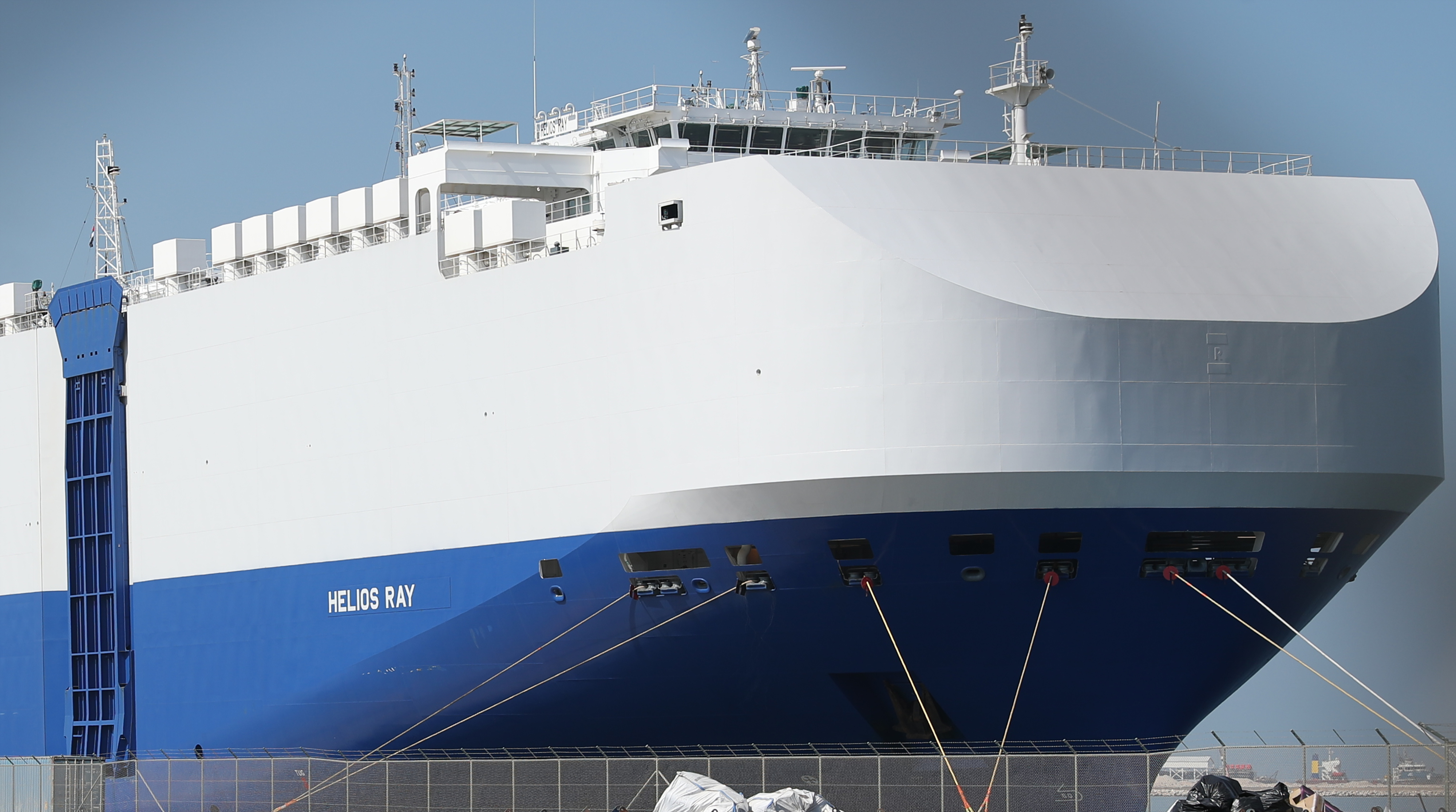The MV Helios Ray, a vehicle-carrier ship, was hit overnight on Friday by a blast above the waterline that a US official said ripped holes in both sides of its hull. The vessel docked at Dubai’s port for repairs on Sunday. It remains unclear what caused the blast.