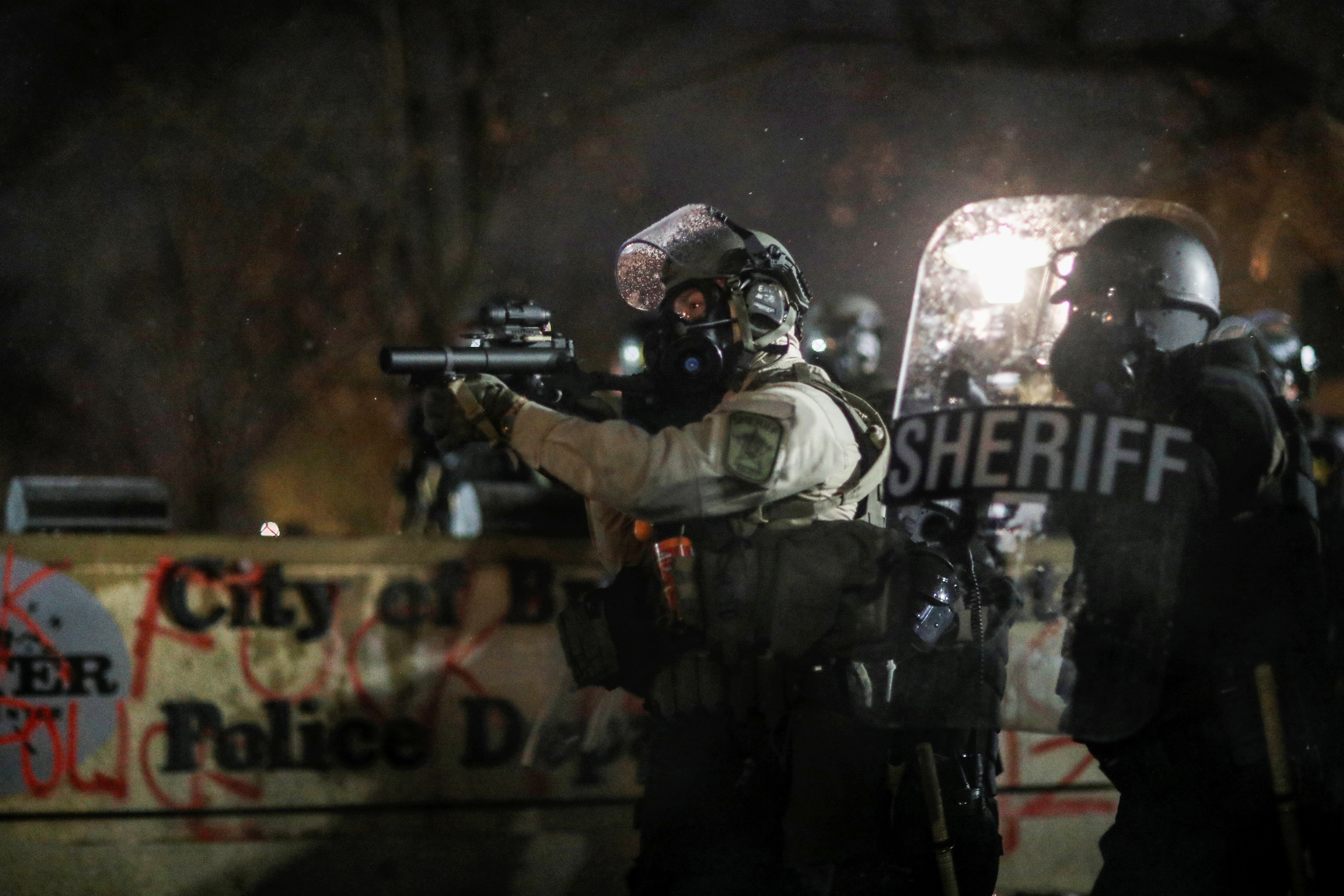 Demonstrators launched fireworks and threw objects at police, who launched tear gas, non-lethal rounds, and flash-bang rounds and tried to force back the crowd, US media reported.