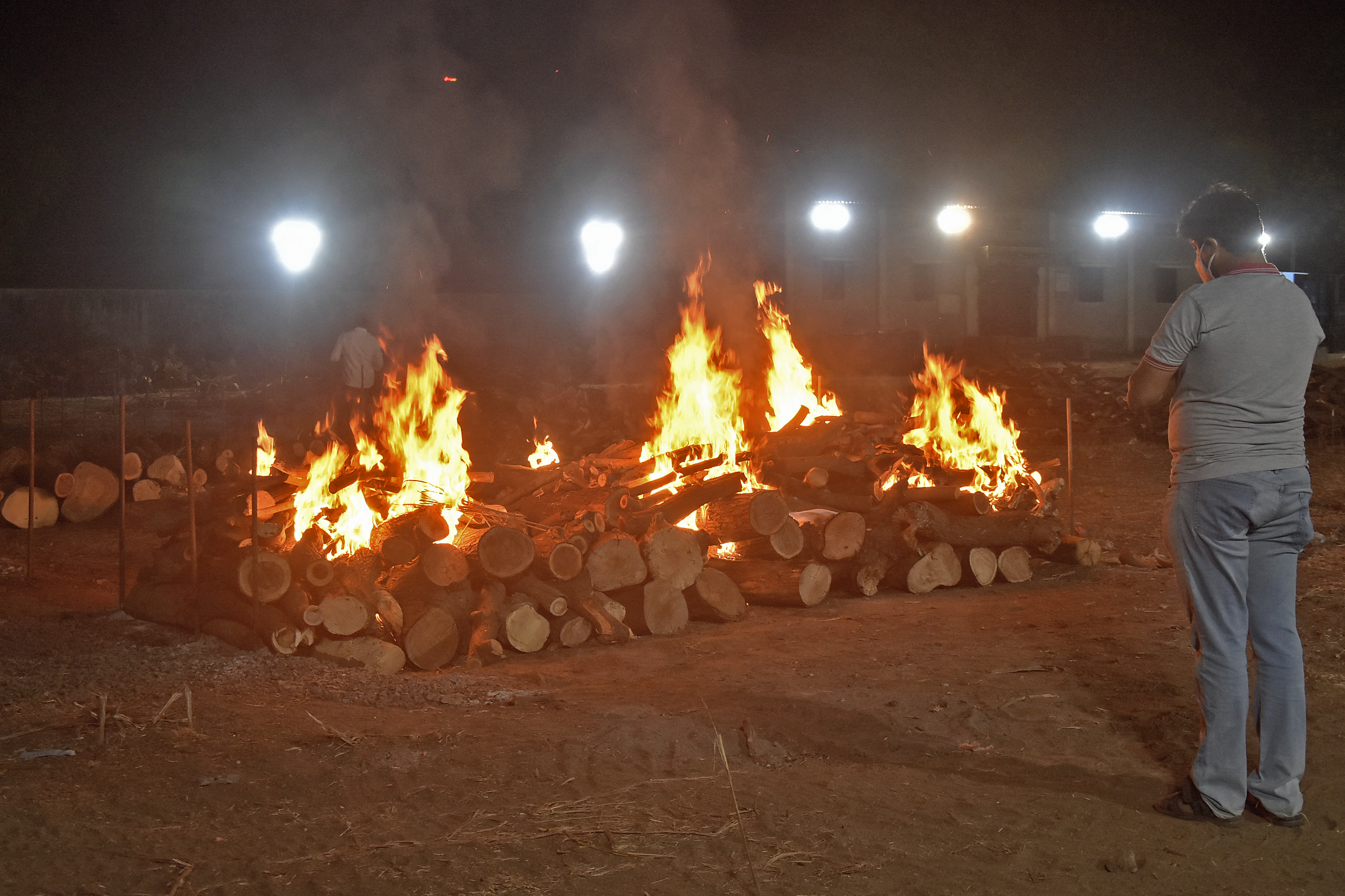 In the western state of Gujarat, many crematoriums in Surat, Rajkot, Jamnagar and Ahmedabad are operating around the clock with three to four times more bodies than normal.