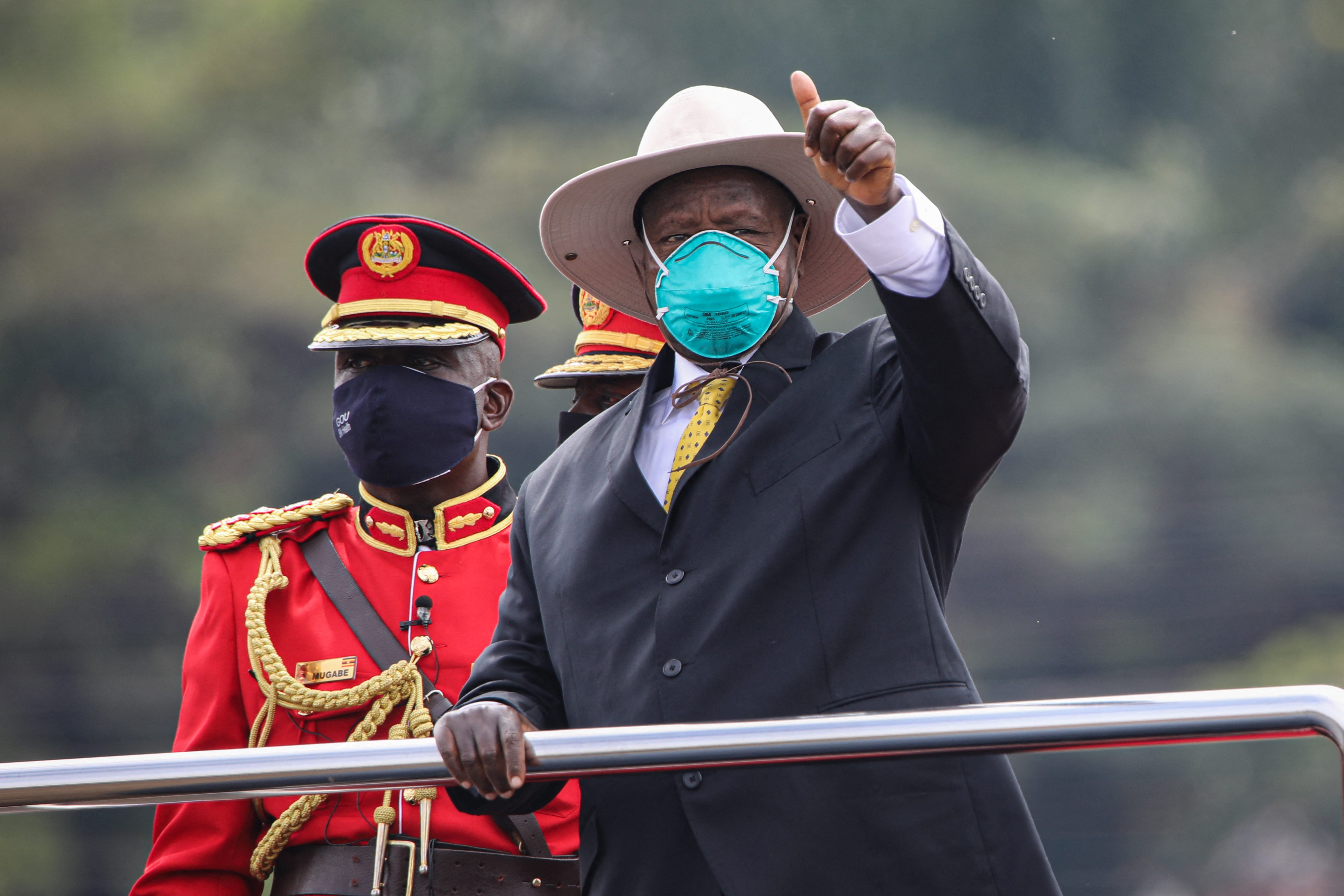 The 76-year-old, wearing a dark blue suit and his trademark wide-brimmed hat, promised to “pay true allegiance” to the country he has ruled nonstop since taking power as a rebel leader in 1986.
