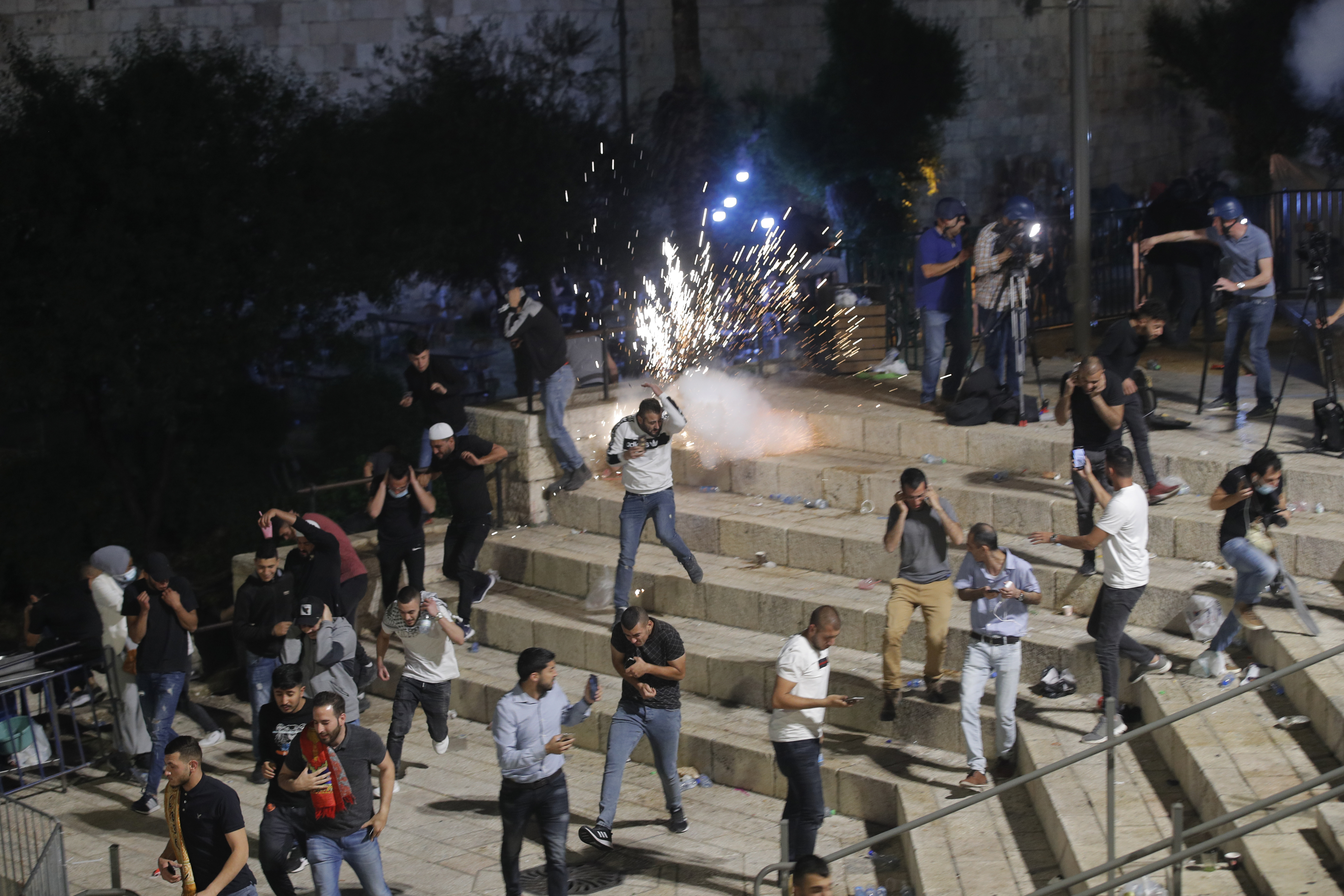 Al Jazeera’s Harry Fawcett, reporting from Damascus Gate in East Jerusalem, said there had been a “repeated cycle of clashes and calm” in the area between Palestinian protesters throwing plastic bottles and Israeli security forces deploying stun grenades and foul-smelling skunk water.