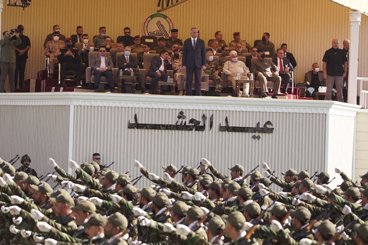 The parade, held in Camp Ashraf, saw Russian-made tanks, boats and locally made rocket launchers come down a broad thoroughfare. Iranian-made weaponry, including drones, were also displayed during the event that was broadcast on Iraqi state TV and was attended by Prime Minister Mustafa al-Kadhimi, officially the country’s commander-in-chief.