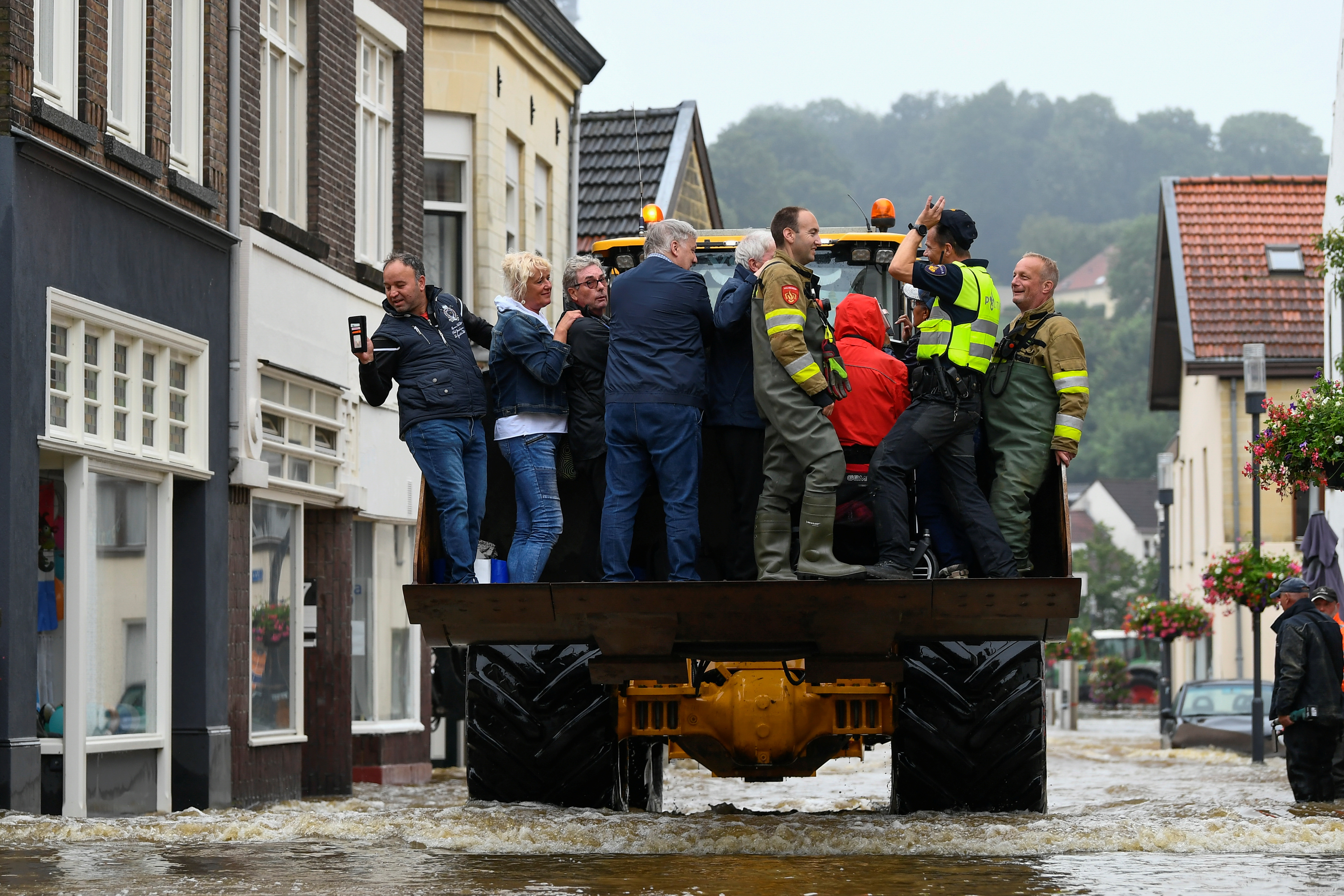 In Belgium, the Vesdre River spilt over its banks and sent water churning through the streets of Pepinster, near Liege, where a rescue operation by firefighters went wrong when a small boat capsized and three elderly people disappeared.