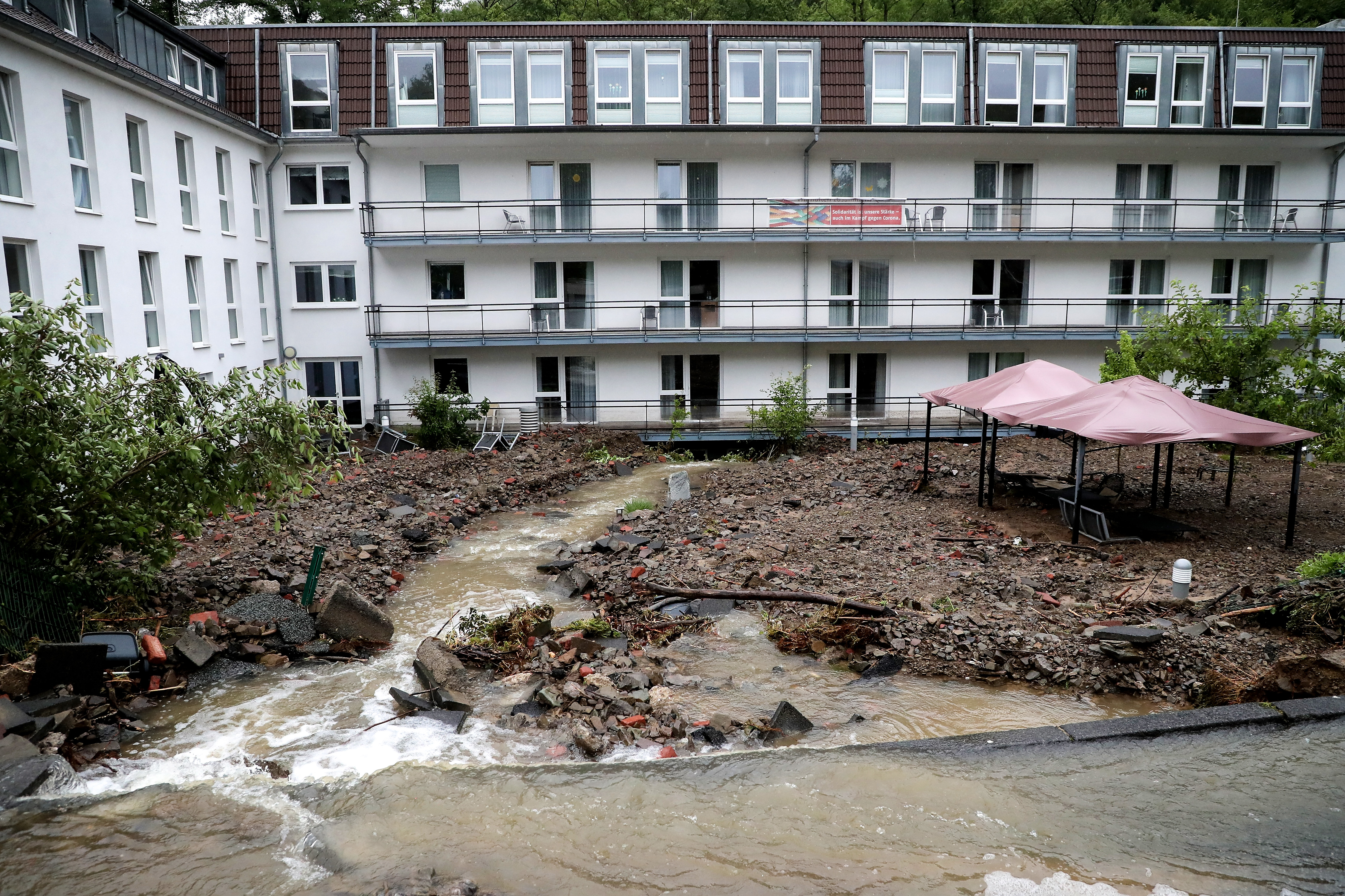 Rescue operations were hampered by blocked roads and phone and internet outages across the Eifel, a volcanic region of rolling hills and small valleys. Some villages were reduced to rubble as old brick and timber houses couldn’t withstand the sudden rush of water, often carrying trees and other debris as it gushed through narrow streets.