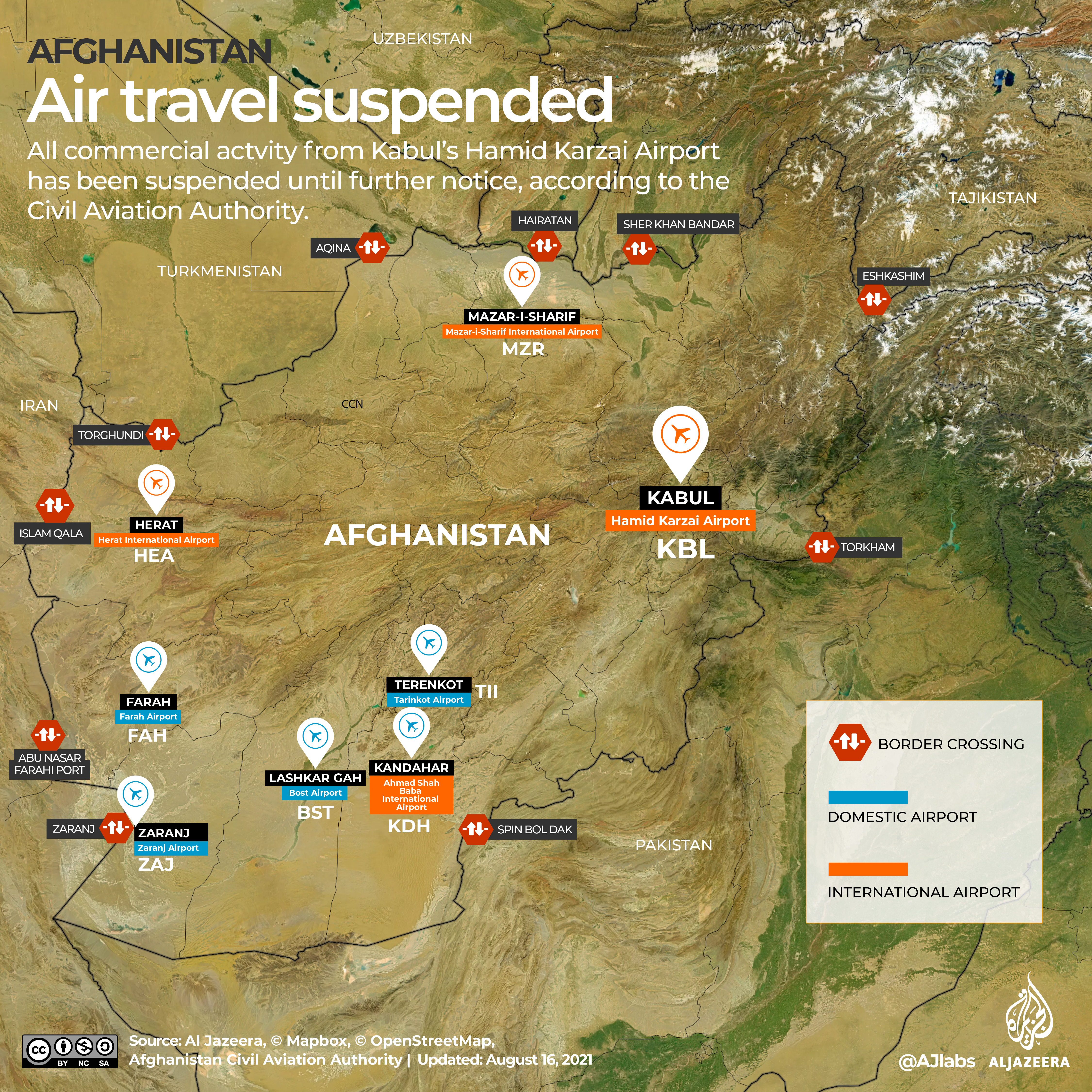 Kabul airport remains one of the only options for people trying to leave the country. The border crossings with Pakistan are open for trade and some forms of pedestrian travel.