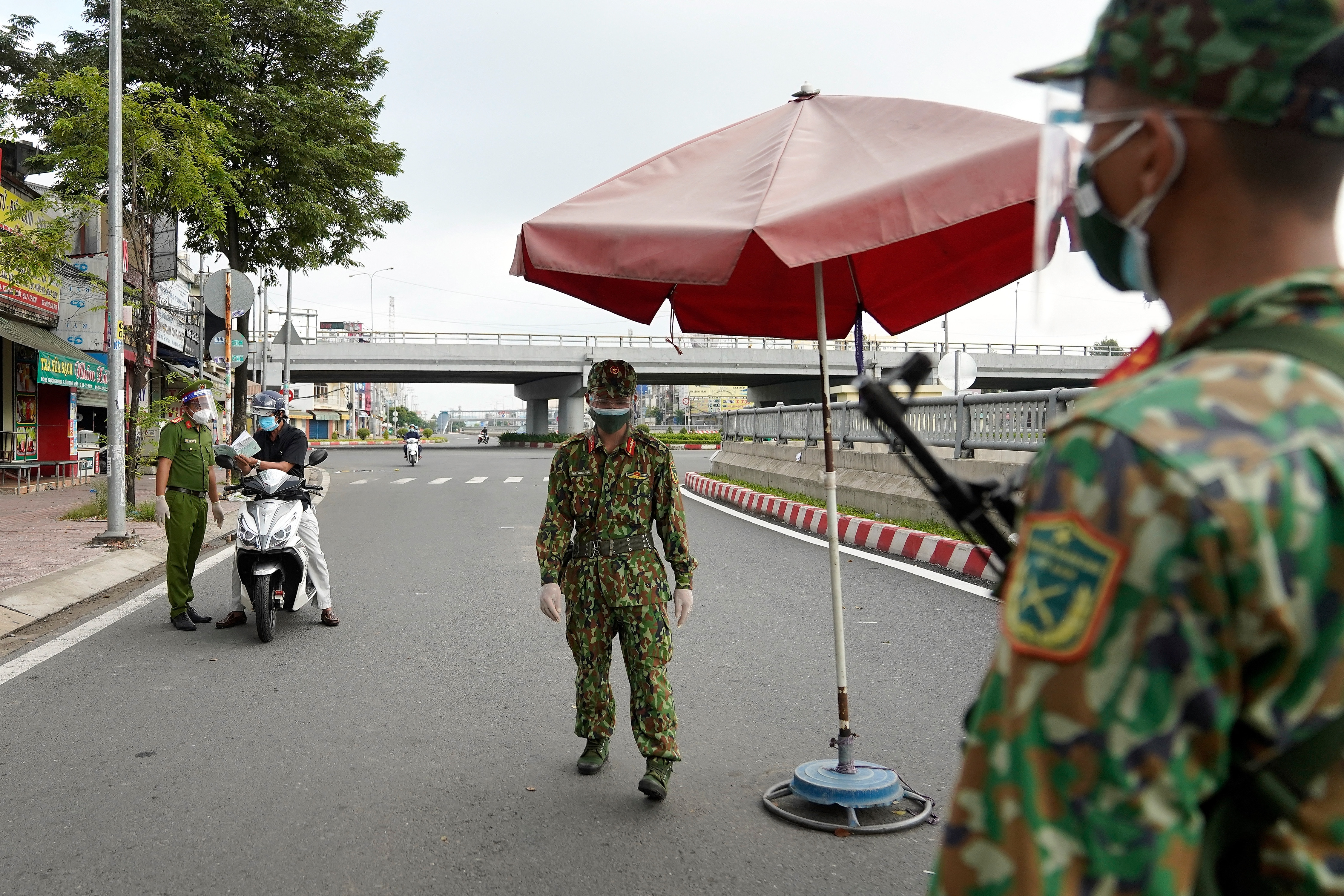 Ho Chi Minh City’s once-bustling streets are now dotted with security checkpoints, some manned by soldiers armed with rifles.