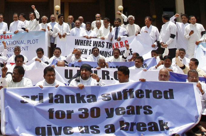 | Sri Lankans gathered on Thursday to oppose a UN-proposed probe of abuses, saying it can be handled locally [Reuters] |