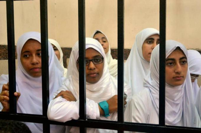 The women, supporters of the deposed president Mohamed Morsi, received 11-year jail sentences on Wednesday for forming a human chain and passing out flyers earlier this month. Seven minors among the group were remanded to juvenile detention until they reach legal age. The youngest in the group is 15 years old.