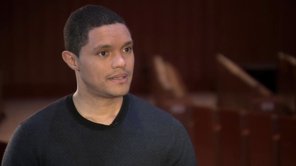 On the topic of whether the media has contributed to the rise of Trump and reports calculating free advertising worth billions of dollars of airtime, including on “The Daily Show”, Noah says there is a distinct difference between unchallenged platforms and critiques of current affairs.