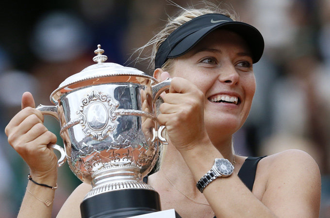 Russia’s Maria Sharapova became the 10th woman in tennis history to win all four Grand Slam titles on Saturday when she defeated Sara Errani of Italy 6-3, 6-2 in the French Open final.