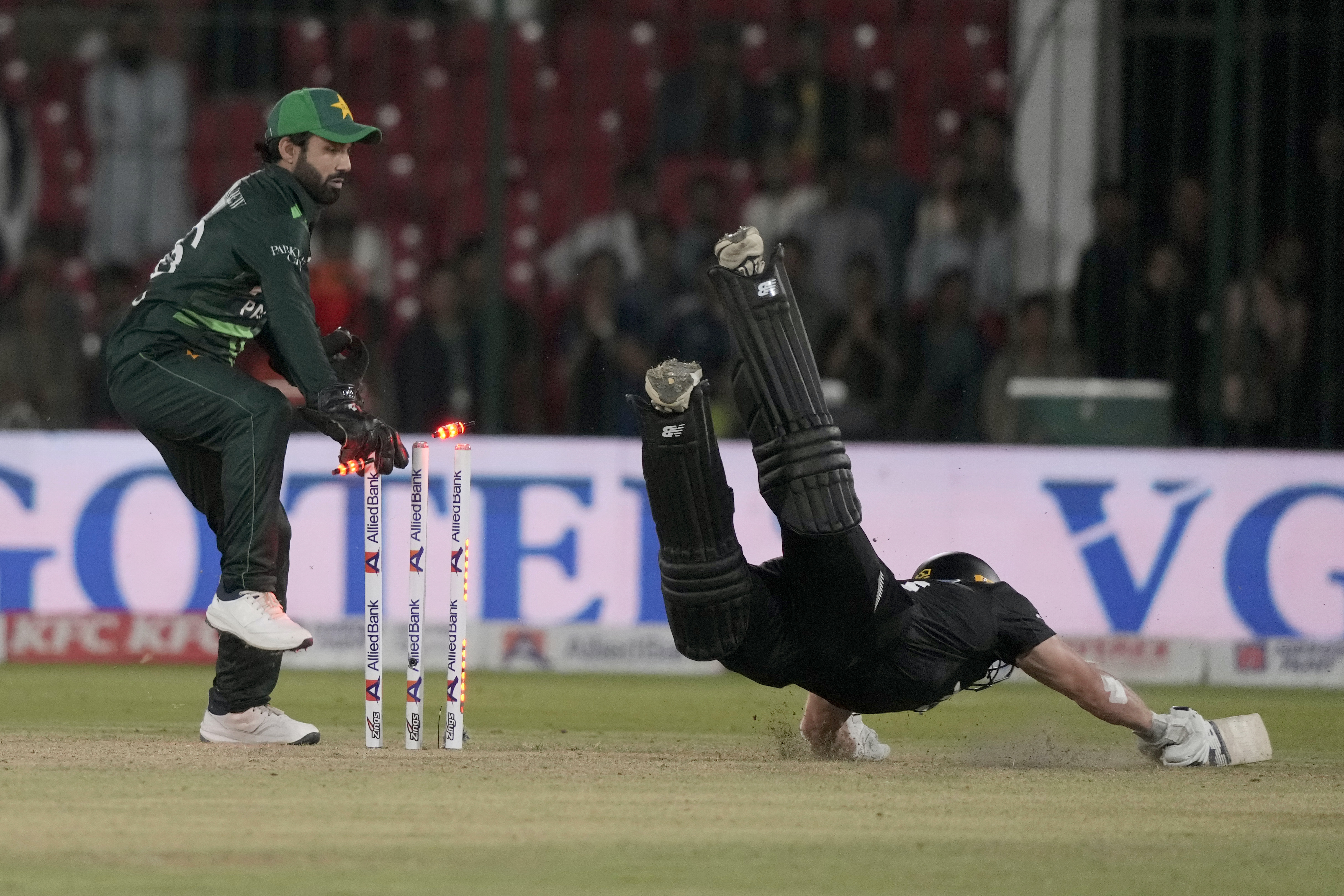 Tayyab Tahir (38 off 33 balls) tried to up the scoring rate after Rizwan and Salman fell within five overs, but he was caught at mid-wicket, and Santner chipped in with two wickets in one over to finish with impressive figures.