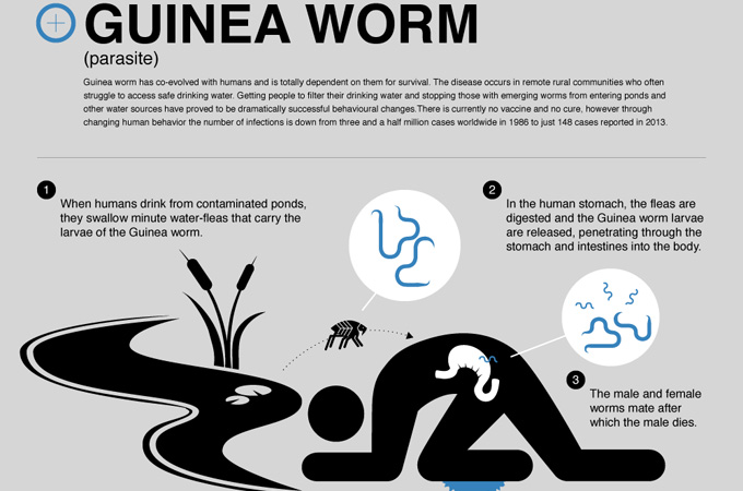Guinea worm has co-evolved with humans and is completely dependent on them for survival.