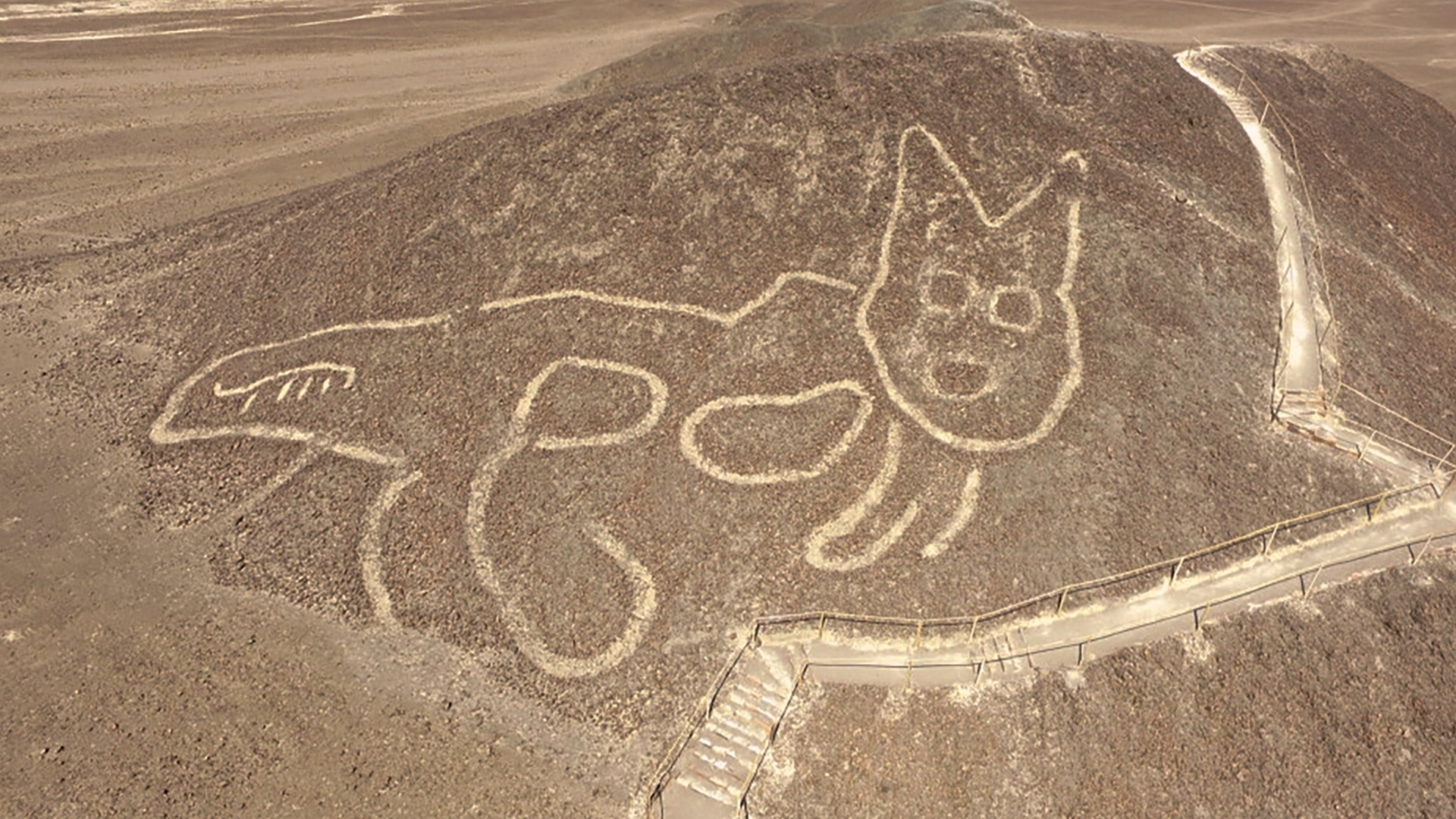 Drone footage captures ancient cat etching