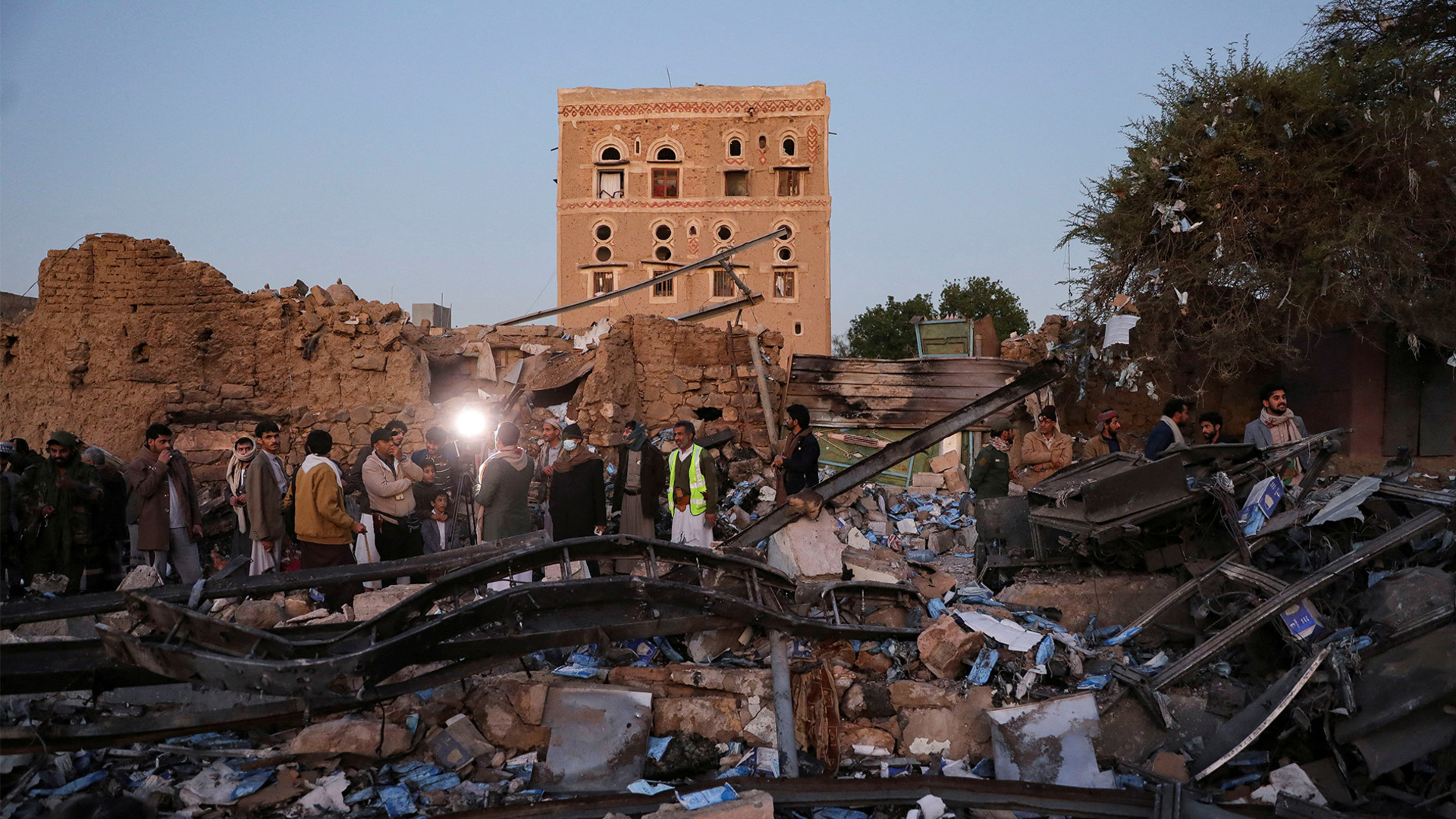 Homes and buildings in a residential area in Yemen’s capital were hit in some of the latest air attacks by the US, which says it is targeting Houthi rebels.